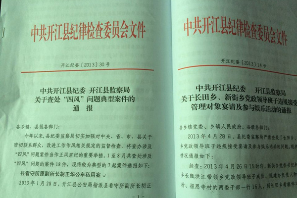 两项结合架起“高压线”。一是将全省党的群众路线教育实践活动与全县党风廉政建设主题活动有机结合,依托“ 民情大调查、问题大解决”“、群众接待日”等平台,切实转变干部作风,听民意、察民情、解民忧;二是将反对“四风”工作与源头防腐紧密结合,注重警示教育,查处并通报涉及“四风”典型案例7起,在廉政开江网站、县电视台对中央“八项规定”和反对“四风”有关规定精神进行重点宣传。