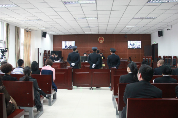 图:大竹县杨家镇群英村原支部书记邱某等三被告人贪污案庭审现场