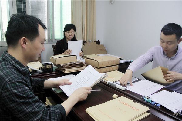 达川区纪委工作人员正在整理廉政档案(粟高峰摄)