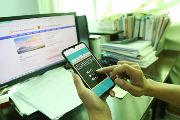 (纪检监察干部利用业余时间进行线上学习答题)