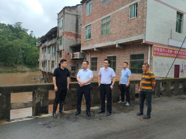 (该县纪委监委主要领导在回龙镇督导防汛救灾工作)