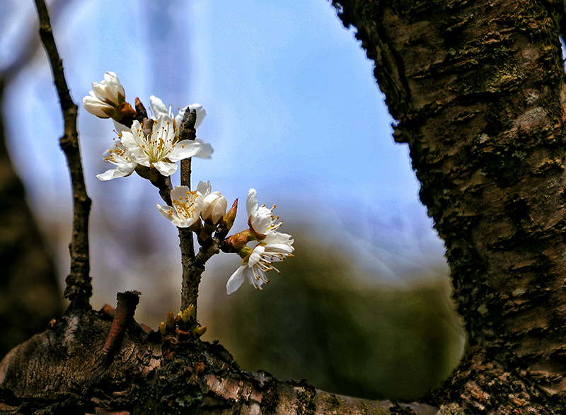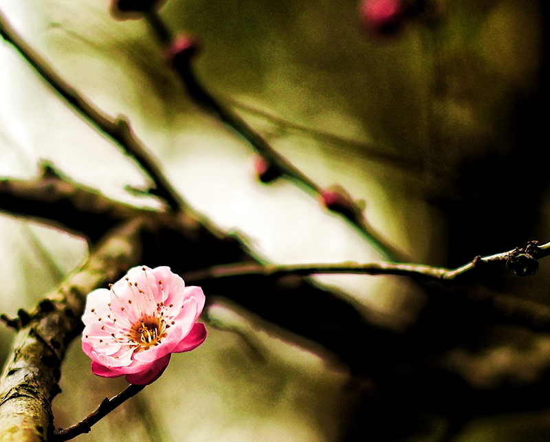 樱花花型雅致、花朵洁白,其清雅秀美的气质和一尘不染的品格融为一体,展现出“士的品格”。