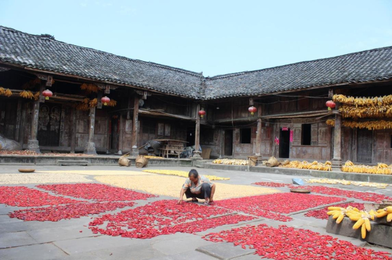 每至秋收,每个太平坎人都变成“画家”,他们以自家院坝为画板,以粮食作画,绘就出一幅幅色彩斑斓的晒秋图。