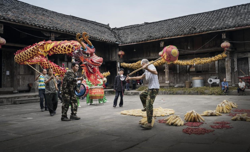 古老的村落,浸润着时光的温度。一条锦色长龙踏着激昂的鼓乐,从亘古中穿梭而来,寄托着千百年来农家最质朴的愿望——丰收与吉祥。